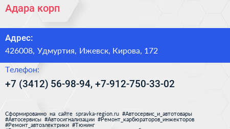 Адара корп по адресу 426008, Удмуртия, Ижевск, Кирова, 172 в дальнейшем Организация, размещена в следующих категориях: