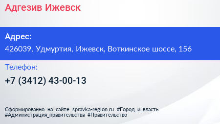 Адгезив-Ижевск по адресу 426039, Удмуртия, Ижевск, Воткинское шоссе, 156 в дальнейшем Организация, размещена в следующих категориях: