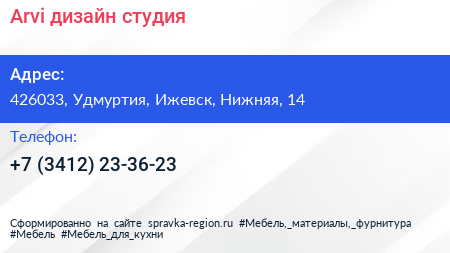 Arvi, дизайн-студия по адресу 426033, Удмуртия, Ижевск, Нижняя, 14 в дальнейшем Организация, размещена в следующих категориях: