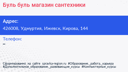 Буль-буль, магазин сантехники по адресу 426008, Удмуртия, Ижевск, Кирова, 144 в дальнейшем Организация, размещена в следующих категориях: