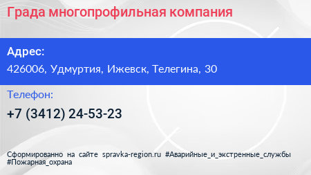 Града, многопрофильная компания по адресу 426006, Удмуртия, Ижевск, Телегина, 30 в дальнейшем Организация, размещена в следующих категориях:
