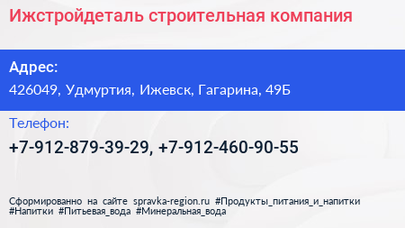 Ижстройдеталь, строительная компания по адресу 426049, Удмуртия, Ижевск, Гагарина, 49Б в дальнейшем Организация, размещена в следующих категориях: