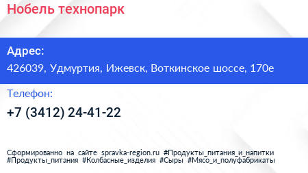 Нобель, технопарк по адресу 426039, Удмуртия, Ижевск, Воткинское шоссе, 170е в дальнейшем Организация, размещена в следующих категориях: