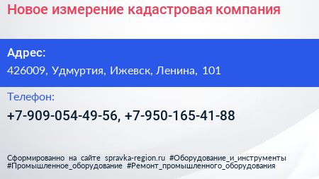 Новое измерение, кадастровая компания по адресу 426009, Удмуртия, Ижевск, Ленина, 101 в дальнейшем Организация, размещена в следующих категориях: