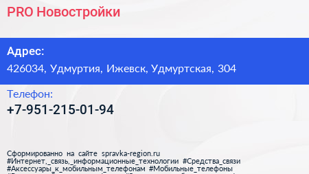 PRO Новостройки по адресу 426034, Удмуртия, Ижевск, Удмуртская, 304 в дальнейшем Организация, размещена в следующих категориях: