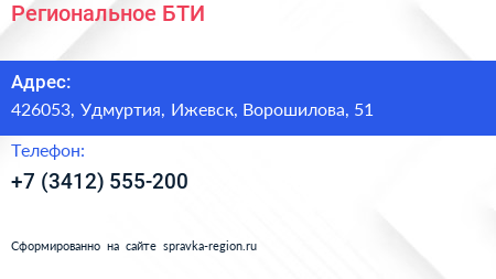 Региональное БТИ по адресу 426053, Удмуртия, Ижевск, Ворошилова, 51 в дальнейшем Организация, размещена в следующих категориях: