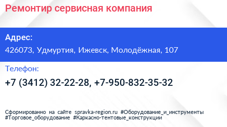 Ремонтир, сервисная компания по адресу 426073, Удмуртия, Ижевск, Молодёжная, 107 в дальнейшем Организация, размещена в следующих категориях: