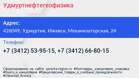 Удмуртнефтегеофизика по адресу 426049, Удмуртия, Ижевск, Механизаторская, 24 в дальнейшем Организация, размещена в следующих категориях: