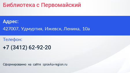 Библиотека, с. Первомайский по адресу 427007, Удмуртия, Ижевск, Ленина, 10а в дальнейшем Организация, размещена в следующих категориях: