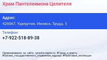 Храм Пантелеимона Целителя по адресу 426067, Удмуртия, Ижевск, Труда, 1 в дальнейшем Организация, размещена в следующих категориях: