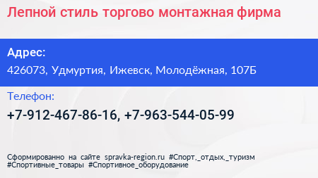 Лепной стиль, торгово-монтажная фирма по адресу 426073, Удмуртия, Ижевск, Молодёжная, 107Б в дальнейшем Организация, размещена в следующих категориях: