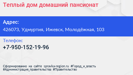 Теплый дом, домашний пансионат по адресу 426073, Удмуртия, Ижевск, Молодёжная, 103 в дальнейшем Организация, размещена в следующих категориях: