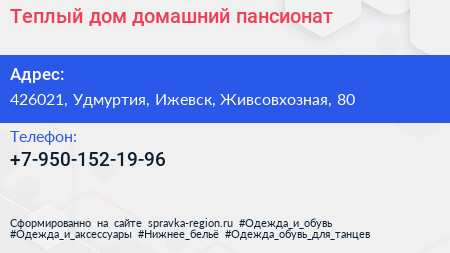 Теплый дом, домашний пансионат по адресу 426021, Удмуртия, Ижевск, Живсовхозная, 80 в дальнейшем Организация, размещена в следующих категориях: