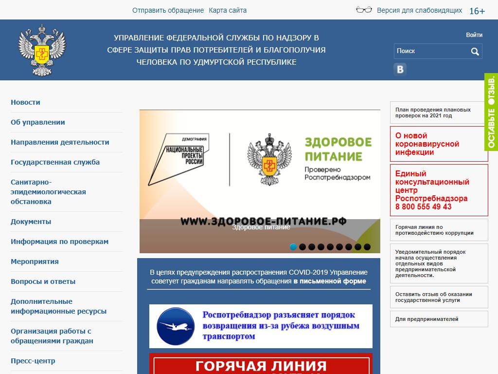 Управление Федеральной службы по надзору в сфере защиты прав потребителей и благополучия человека по Удмуртской Республике по адресу 426009, Удмуртия, Ижевск, Ленина, 106а в дальнейшем Организация, размещена в следующих категориях: