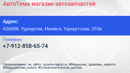 АвтоТема, магазин автозапчастей по адресу 426008, Удмуртия, Ижевск, Удмуртская, 255в в дальнейшем Организация, размещена в следующих категориях: