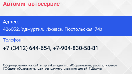 Автомиг, автосервис по адресу 426052, Удмуртия, Ижевск, Постольская, 74а в дальнейшем Организация, размещена в следующих категориях: