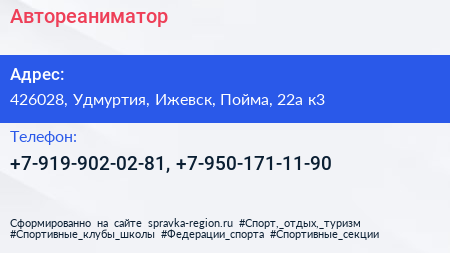 Автореаниматор по адресу 426028, Удмуртия, Ижевск, Пойма, 22а к3 в дальнейшем Организация, размещена в следующих категориях: