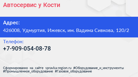 Автосервис у Кости по адресу 426008, Удмуртия, Ижевск, им. Вадима Сивкова, 120/2 в дальнейшем Организация, размещена в следующих категориях:
