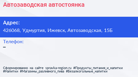 Автозаводская, автостоянка по адресу 426068, Удмуртия, Ижевск, Автозаводская, 15Б в дальнейшем Организация, размещена в следующих категориях: