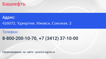 Башнефть по адресу 426072, Удмуртия, Ижевск, Союзная, 2 в дальнейшем Организация, размещена в следующих категориях: