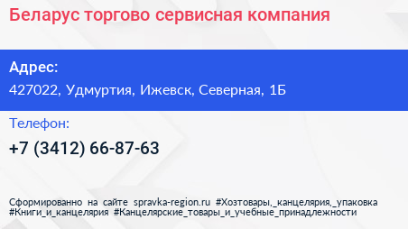 Беларус, торгово-сервисная компания по адресу 427022, Удмуртия, Ижевск, Северная, 1Б в дальнейшем Организация, размещена в следующих категориях: