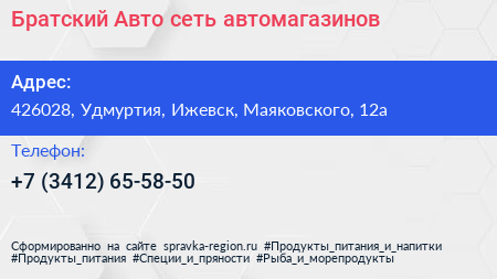 Братский Авто, сеть автомагазинов по адресу 426028, Удмуртия, Ижевск, Маяковского, 12а в дальнейшем Организация, размещена в следующих категориях: