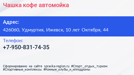 Чашка кофе, автомойка по адресу 426060, Удмуртия, Ижевск, 10 лет Октября, 44 в дальнейшем Организация, размещена в следующих категориях: