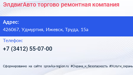 ЭлдвигАвто, торгово-ремонтная компания по адресу 426067, Удмуртия, Ижевск, Труда, 15а в дальнейшем Организация, размещена в следующих категориях: