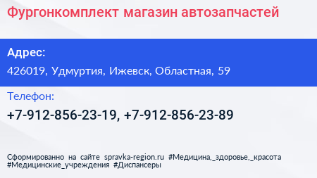 Фургонкомплект, магазин автозапчастей по адресу 426019, Удмуртия, Ижевск, Областная, 59 в дальнейшем Организация, размещена в следующих категориях:
