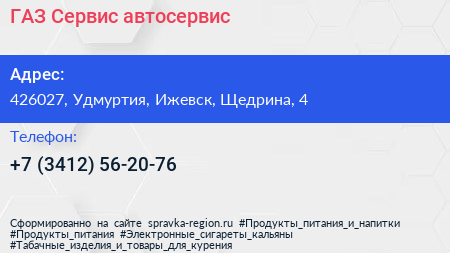 ГАЗ-Сервис, автосервис по адресу 426027, Удмуртия, Ижевск, Щедрина, 4 в дальнейшем Организация, размещена в следующих категориях: