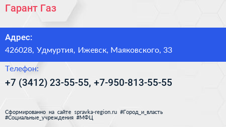 Гарант-Газ по адресу 426028, Удмуртия, Ижевск, Маяковского, 33 в дальнейшем Организация, размещена в следующих категориях:
