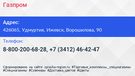 Газпром по адресу 426065, Удмуртия, Ижевск, Ворошилова, 90 в дальнейшем Организация, размещена в следующих категориях: