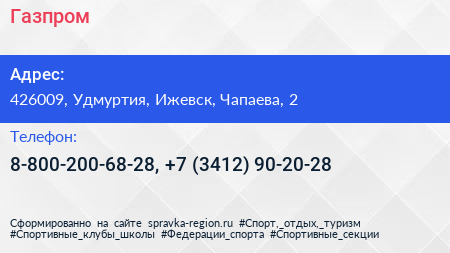Газпром по адресу 426009, Удмуртия, Ижевск, Чапаева, 2 в дальнейшем Организация, размещена в следующих категориях: