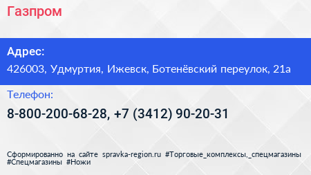Газпром по адресу 426003, Удмуртия, Ижевск, Ботенёвский переулок, 21а в дальнейшем Организация, размещена в следующих категориях: