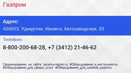 Газпром по адресу 426053, Удмуртия, Ижевск, Автозаводская, 33 в дальнейшем Организация, размещена в следующих категориях: