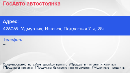 ГосАвто, автостоянка по адресу 426069, Удмуртия, Ижевск, Подлесная 7-я, 28г в дальнейшем Организация, размещена в следующих категориях: