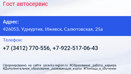 Гост, автосервис по адресу 426053, Удмуртия, Ижевск, Салютовская, 25а в дальнейшем Организация, размещена в следующих категориях: