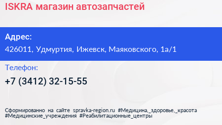 ISKRA, магазин автозапчастей по адресу 426011, Удмуртия, Ижевск, Маяковского, 1а/1 в дальнейшем Организация, размещена в следующих категориях:
