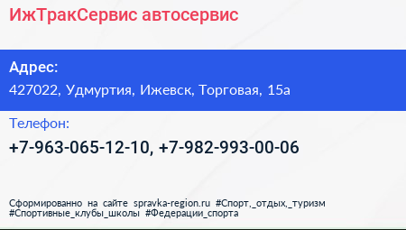 ИжТракСервис, автосервис по адресу 427022, Удмуртия, Ижевск, Торговая, 15а в дальнейшем Организация, размещена в следующих категориях: