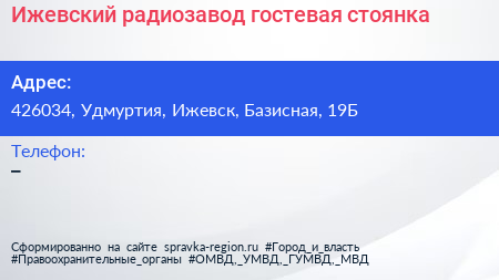 Ижевский радиозавод, гостевая стоянка по адресу 426034, Удмуртия, Ижевск, Базисная, 19Б в дальнейшем Организация, размещена в следующих категориях: