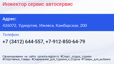 Инжектор-сервис, автосервис по адресу 426072, Удмуртия, Ижевск, Камбарская, 200 в дальнейшем Организация, размещена в следующих категориях:
