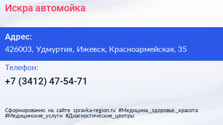 Искра, автомойка по адресу 426003, Удмуртия, Ижевск, Красноармейская, 35 в дальнейшем Организация, размещена в следующих категориях: