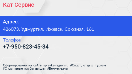 Кат Сервис по адресу 426073, Удмуртия, Ижевск, Союзная, 161 в дальнейшем Организация, размещена в следующих категориях: