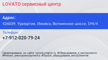 LOVATO, сервисный центр по адресу 426039, Удмуртия, Ижевск, Воткинское шоссе, 194/4 в дальнейшем Организация, размещена в следующих категориях:
