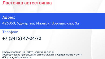 Ласточка, автостоянка по адресу 426053, Удмуртия, Ижевск, Ворошилова, 3а в дальнейшем Организация, размещена в следующих категориях: