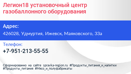 Легион18, установочный центр газобаллонного оборудования по адресу 426028, Удмуртия, Ижевск, Маяковского, 33а в дальнейшем Организация, размещена в следующих категориях: