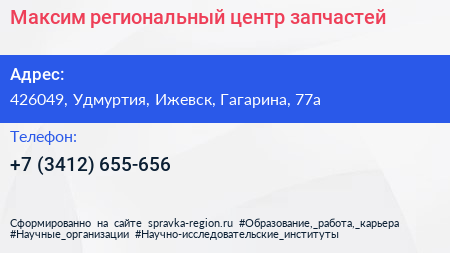 Максим, региональный центр запчастей по адресу 426049, Удмуртия, Ижевск, Гагарина, 77а в дальнейшем Организация, размещена в следующих категориях: