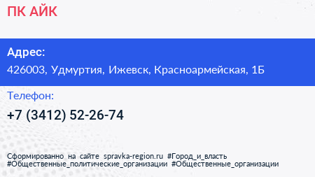 ПК АЙК по адресу 426003, Удмуртия, Ижевск, Красноармейская, 1Б в дальнейшем Организация, размещена в следующих категориях: