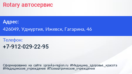 Rotary, автосервис по адресу 426049, Удмуртия, Ижевск, Гагарина, 46 в дальнейшем Организация, размещена в следующих категориях: