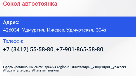 Сокол, автостоянка по адресу 426034, Удмуртия, Ижевск, Удмуртская, 304з в дальнейшем Организация, размещена в следующих категориях: